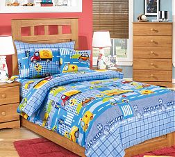 Комплект постельного белья 1,5-спальный, бязь "Люкс", детская расцветка (Машинки, голубой)