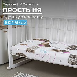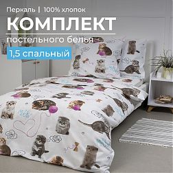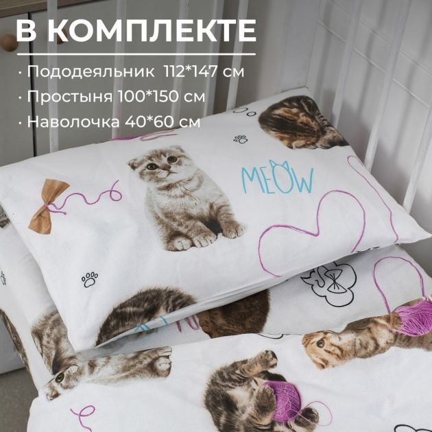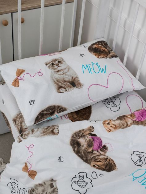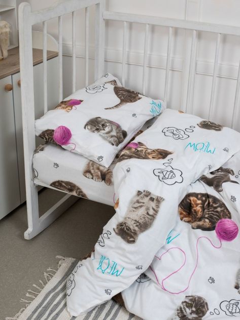 Комплект постельного белья в детскую кроватку, перкаль (Пушистики)