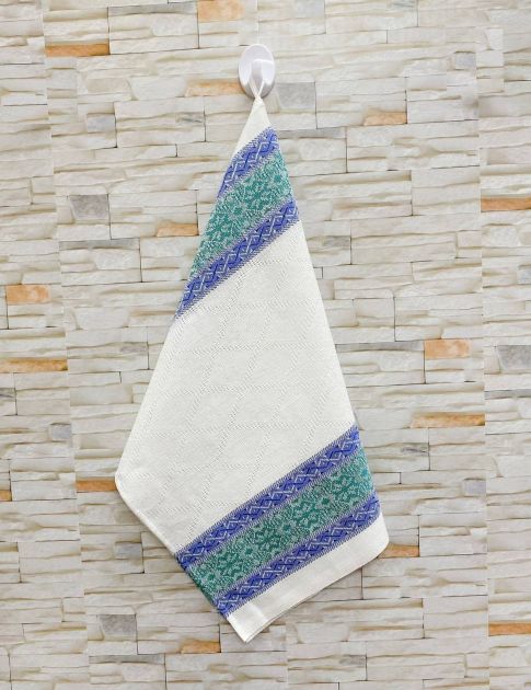 Полотенце кухонное 50*80см жаккардовое, полулен, белый фон (Ромбы, синий, вид 2)