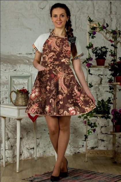 Фартук кухонный "Солнце", полулен (Сказочные узоры)