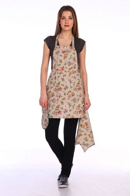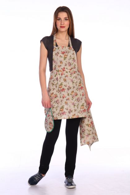 Кухонный комплект состоит из фартука c двумя удобными глубокими карманами, прямоугольного полотенца и прихватки. Состав ткани - полулён ( 50 % лён + 50 % хлопок ) Группа товара