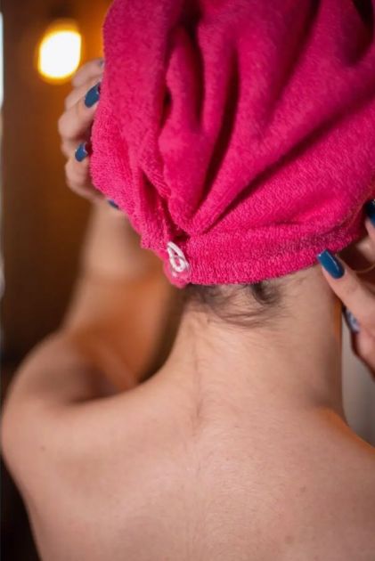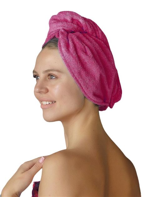 Очень удобная чалма из качественной однотонной махровой ткани плотностью 350 г/м2. Застежка "петля-пуговица". Артикул