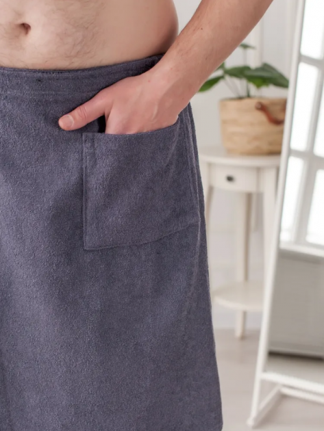 Универсальный размер килта мужского махрового 64 см на 142 см подойдет на любой рост и фигуру до 54-56 размера. Имеется удобный вместительный карман.