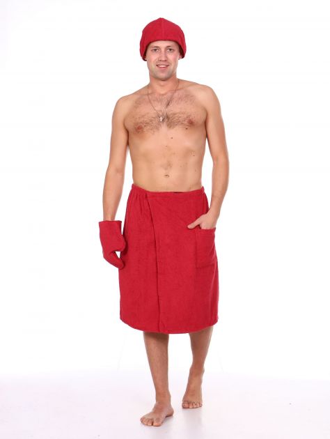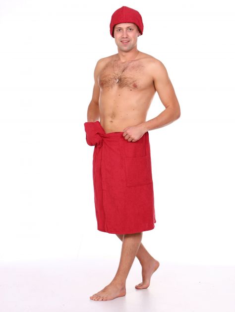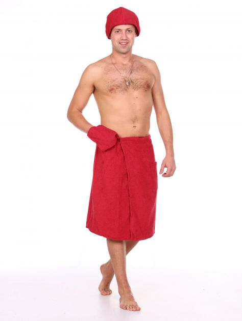 Комплект для сауны мужской,100% хлопок (Бордовый, вид 1 )