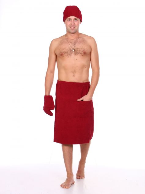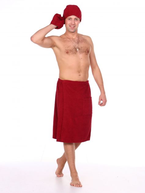 Комплект для сауны мужской,100% хлопок (Бордовый )