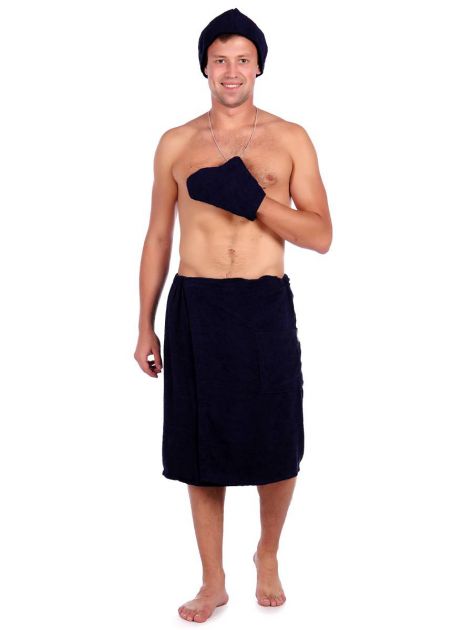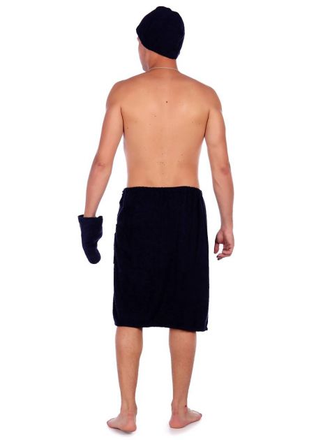 Комплект для бани и сауны из махрового полотна плотностью 380 г/м2: килт на резинке с липучкой, варежка и шапочка.