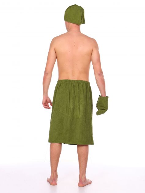 Комплект для бани и сауны из махрового полотна плотностью 380 г/м2: килт на резинке с липучкой, варежка и шапочка.