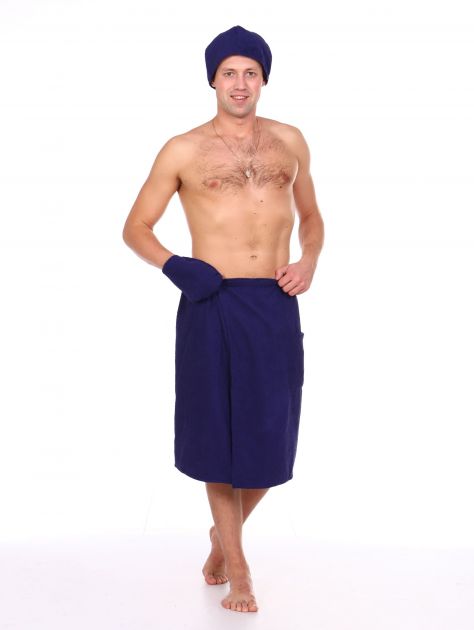 Комплект для сауны мужской,100% хлопок (Темно-синий )