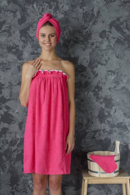Комплект для сауны женский,100% хлопок (Малиновый )