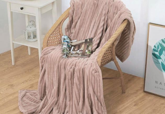Плед 240*210 см, Велсофт - жаккард, Нежность (Пудра-страйп)