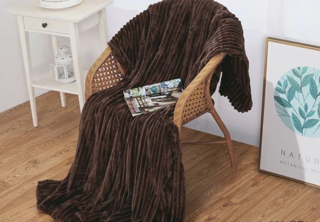 Плед 240*210 см, Велсофт - жаккард, Нежность (Шоколад-страйп)