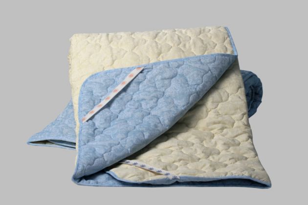 Наматрасник имеет резинку на четырех углах для крепления к матрасу. На резинке отмечены символы-подсказки для использования по сезону: "снежинки" зимой, "солнышки" летом. Плотность наполнителя 300 г/м2. Ткань хлопок/пэ, наполнитель овечья шерсть термоскрепленная 150 г/м2, хлопок термоскрепленный 200 г/м2., цвет одна сторона "зимняя" - голубой жаккард, вторая сторона "летняя" - бежевый жаккард.