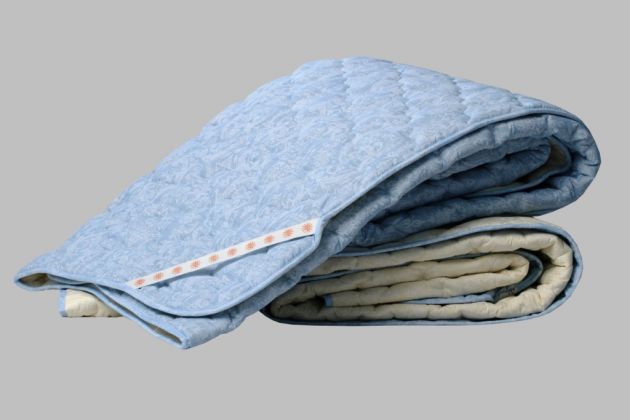 Наматрасник имеет резинку на четырех углах для крепления к матрасу. На резинке отмечены символы-подсказки для использования по сезону: "снежинки" зимой, "солнышки" летом. Плотность наполнителя 300 г/м2. Ткань хлопок/пэ, наполнитель овечья шерсть термоскрепленная 100 г/м2, хлопок термоскрепленный 200 г/м2., цвет одна сторона "зимняя" - голубой жаккард, вторая сторона "летняя" - бежевый жаккард.