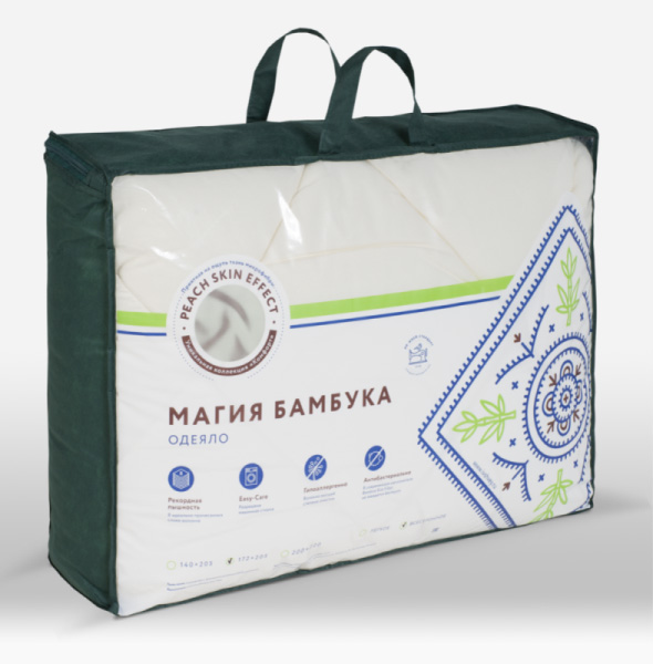 Облегченные одеяла «Магия Бамбука» размером 200*220 см гипоаллергенные, антибактериальные, просты в уходе и удобны в использовании. Они подойдут как взрослым, так и детям. Тонкие по толщине, но теплые по своим свойствам, и не такие тяжелые как ватные. Наполнитель бамбуковое и полиэфирное волокно плотностью 150 г/кв. м. не сбивается, не сминается, не теряет свою форму. Мы создаем все для уюта и предлагаем широкий ассортимент принадлежностей для сна. Наш домашний текстиль практичный, износостойкий. Облегченные одеяла «Магия Бамбука» - это настоящая находка для тех, кто ценит качество сна и комфорт. Размерность одеяла