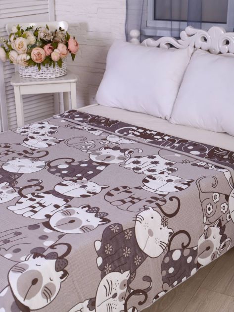 Покрывало 200*230 см "Атмосфера благополучия" (Мурлыки, бежево-коричневый)