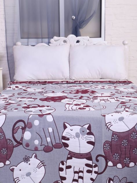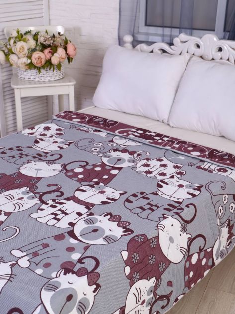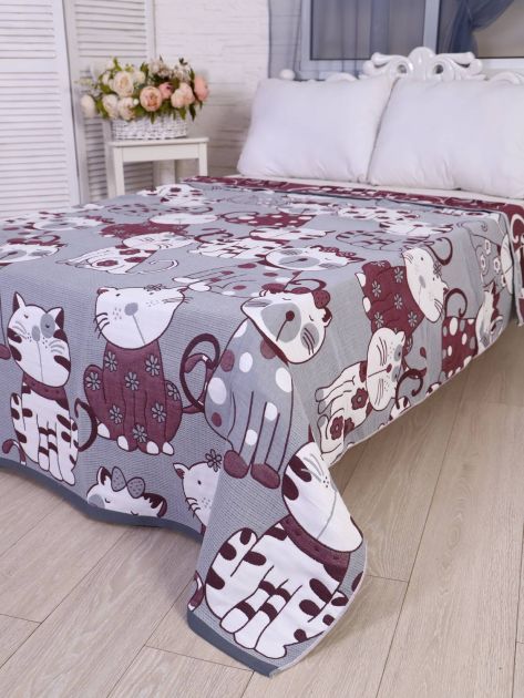 Покрывало 200*230 см "Атмосфера благополучия" (Мурлыки, серо-бордовый)