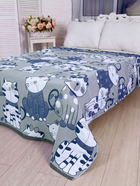Покрывало 200*230 см "Атмосфера благополучия" (Мурлыки, серо-голубой)