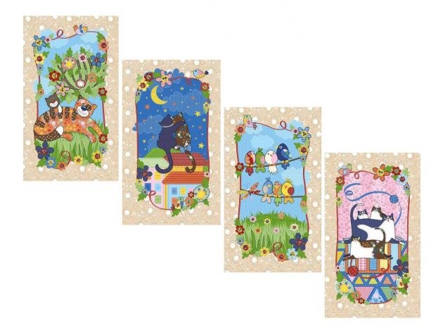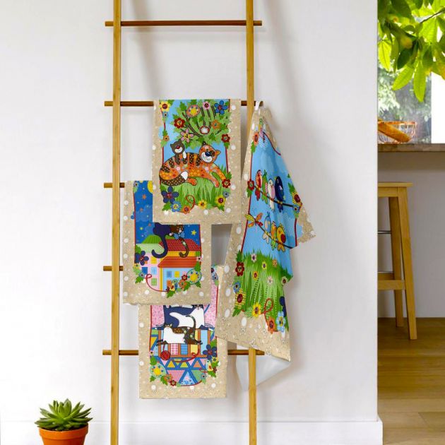 Комплект полотенец 35*60 см, рогожка, 4 штуки (Лоскутное шитье)