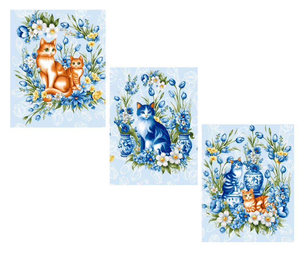 Комплект полотенец 48*60 см, 3 шт., рогожка (Декоративные котики)
