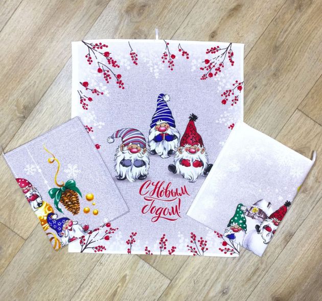 Комплект полотенец 48*60 см, 3 шт., рогожка (Гномики)
