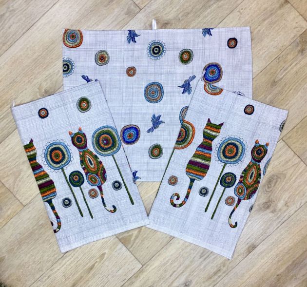 Комплект полотенец 48*60 см, 3 шт., рогожка (Кошки)