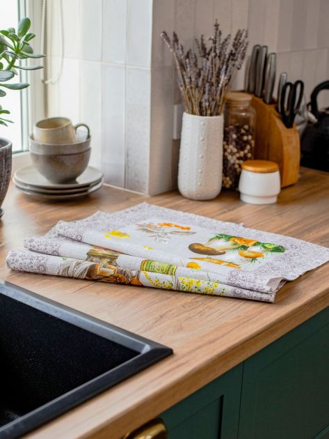 Чудесные наборы кухонных полотенец из рогожки размером 48*60 см. Нежные расцветки, очень стойкие красители. В комплекте три полотенца с петелькой. Состав ткани - хлопок 100 %.