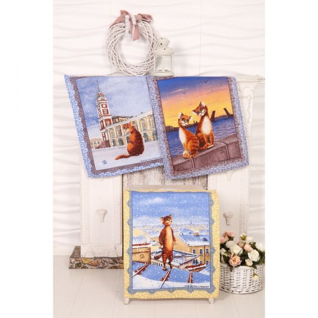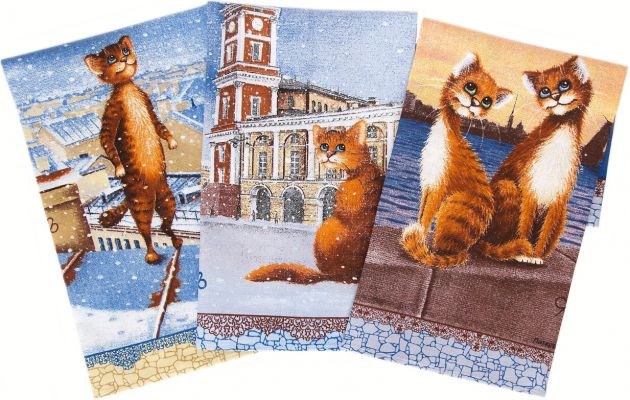 Комплект полотенец 48*60 см, 3 шт., рогожка (Питерские коты)
