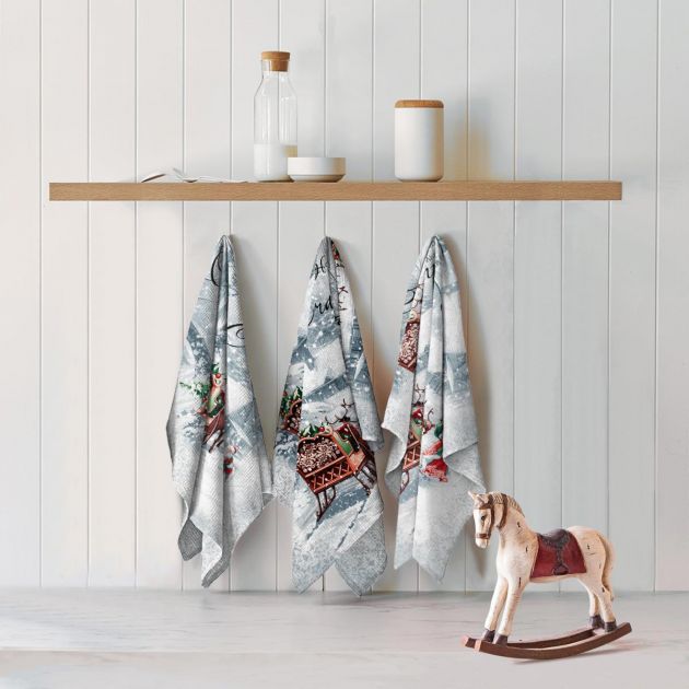 Комплект полотенец 48*60 см, 3 шт., рогожка (Ретро Новый год)