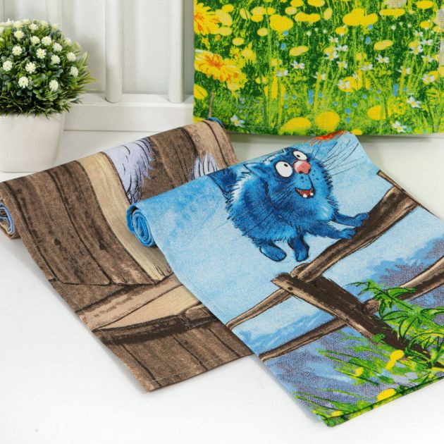 Чудесные наборы кухонных полотенец из рогожки размером 48*60 см. Нежные расцветки, очень стойкие красители. В комплекте три полотенца с петелькой. Состав ткани - хлопок 100 %.