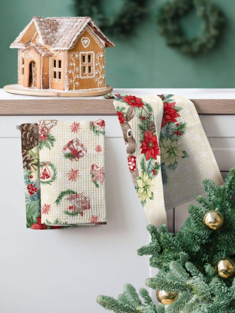Комплект вафельных полотенец 48*60 см, 3 штуки (Лапландия, бежевый)