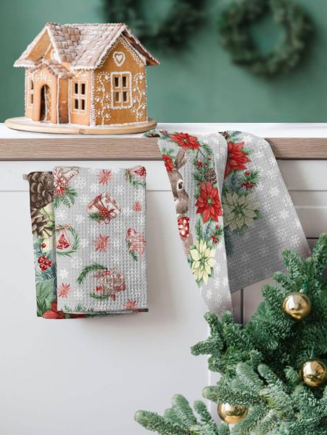 Комплект вафельных полотенец 48*60 см, 3 штуки (Лапландия, серый)