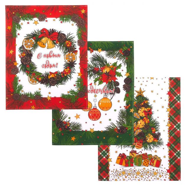 Прекрасные наборы кухонных полотенец размером 48*60 см. Яркие, стойкие расцветки. В комплекте три полотенца с петелькой. Состав ткани - хлопок 100 %. Ткань