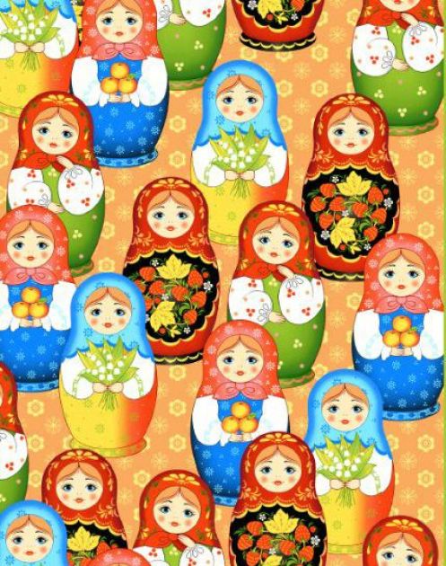 Комплект вафельных полотенец 48*60 см, 3 штуки (Матрешки)
