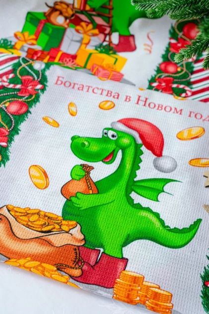 Комплект вафельных полотенец 48*60 см, 3 штуки (Новогодние подарки)