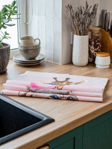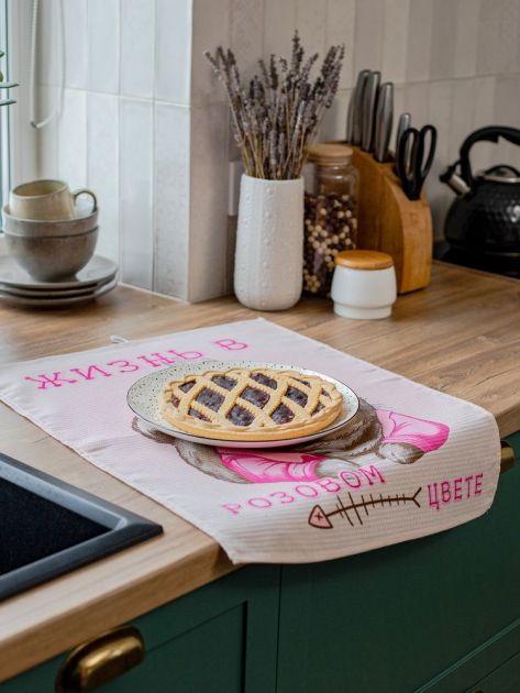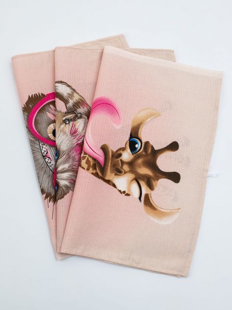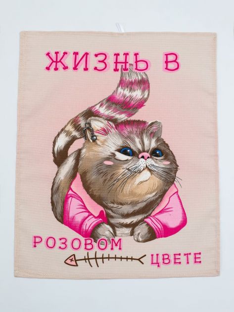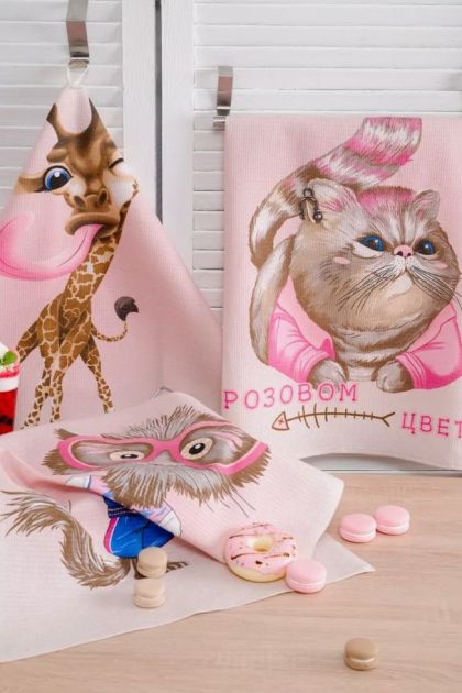 Комплект вафельных полотенец 48*60 см, 3 штуки (Розовый кот)