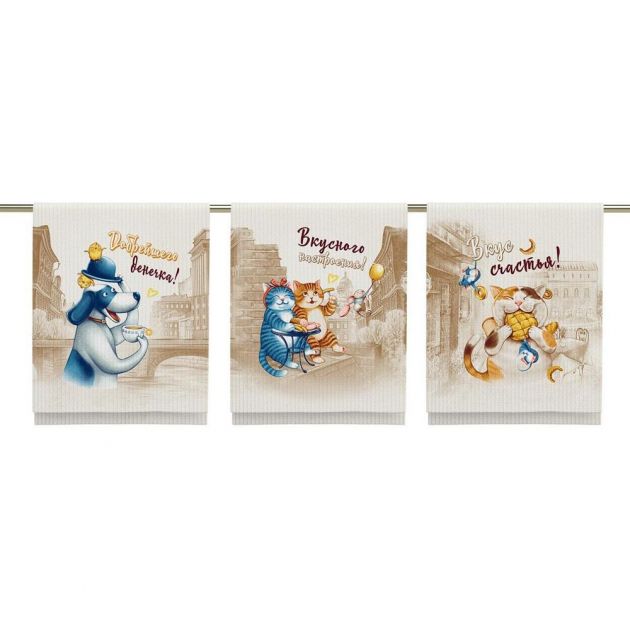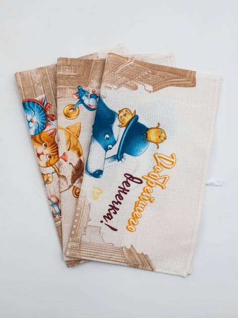 Комплект вафельных полотенец 48*60 см, 3 штуки (Вкусное настроение)