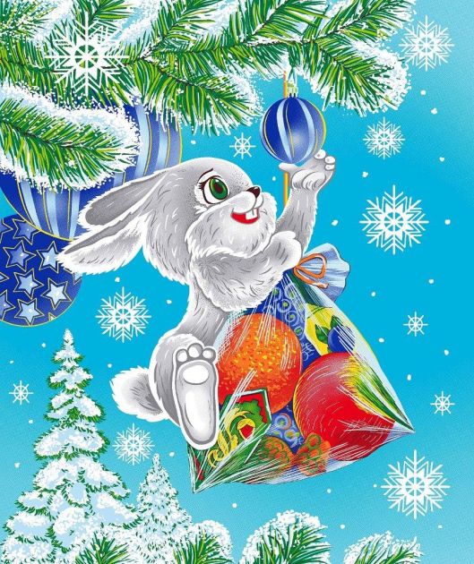 Полотенце 50*60 см вафельное (Новогодний зайка)