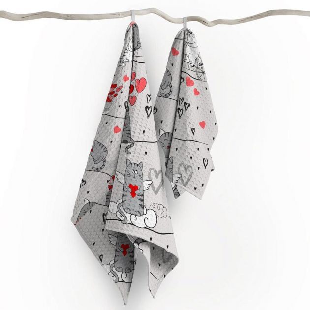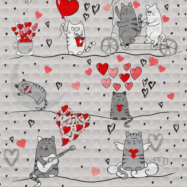 Полотенце 50*60 см вафельное (Влюбленные коты)