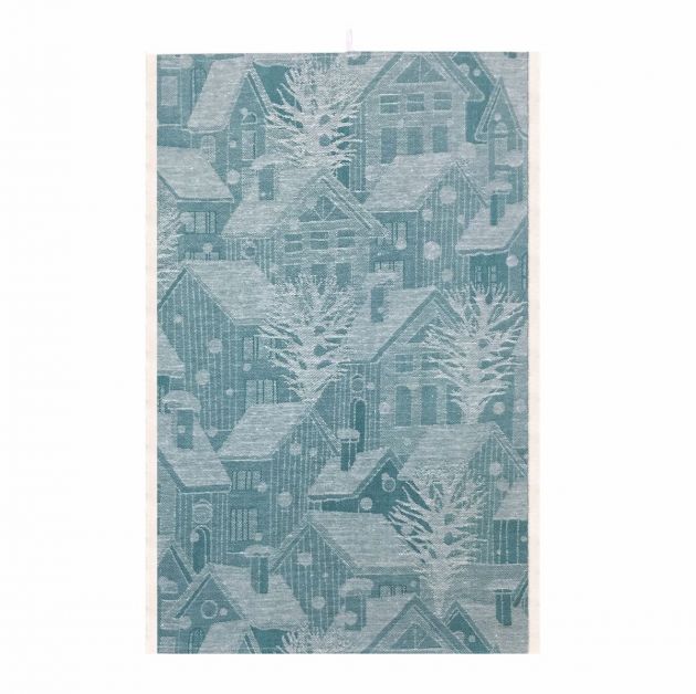 Полотенце кухонное 50*70 см, жаккардовое, 100 % лён (Домики, зеленый)