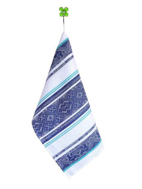 Полотенце кухонное 50*70 см, жаккардовое, 100 % лён (Русские узоры, синий)