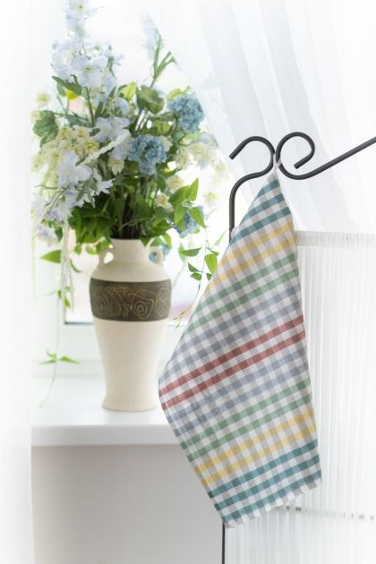 Размер 50*70 см. Состав 50% лен, 50% хлопок. Прекрасно впитывает влагу, не теряет цвет при кипячении. Полотенце с петелькой. Ткань