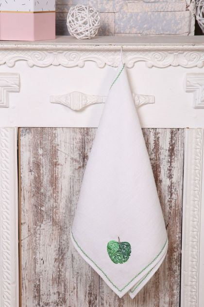 Полотенце кухонное с вышивкой 45*90 см, жаккардовое, 100 % лён (Яблоко)