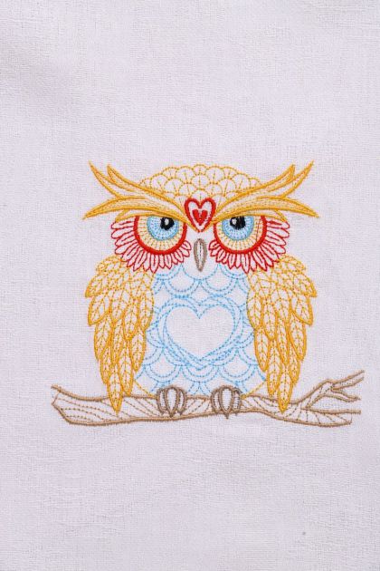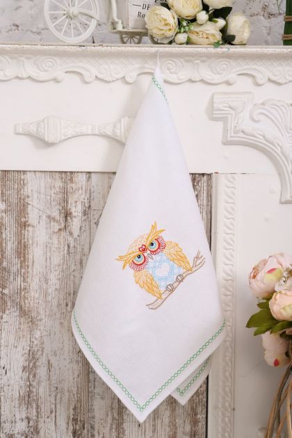 Полотенце кухонное с вышивкой "Совушки" 45*90 см, 100 % лён (Совушка, вид 2)