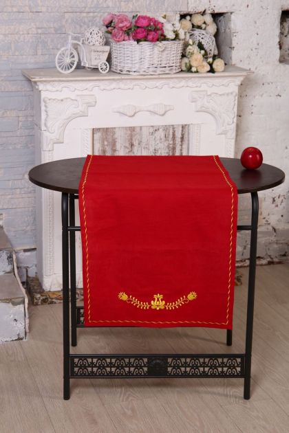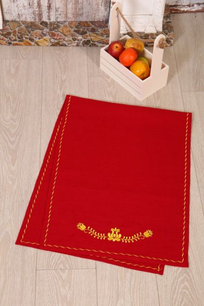 Рушник 50*150 см, с вышивкой, лён 100 % (Венгерский узор, красный)