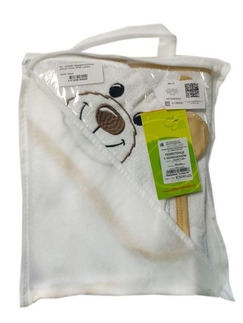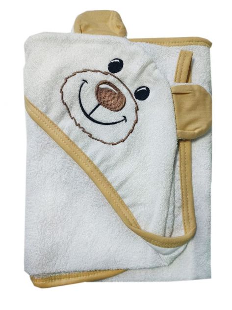 Махровое полотенце детское "Уголок" 95*95 с ушками (Мишка, белый)
