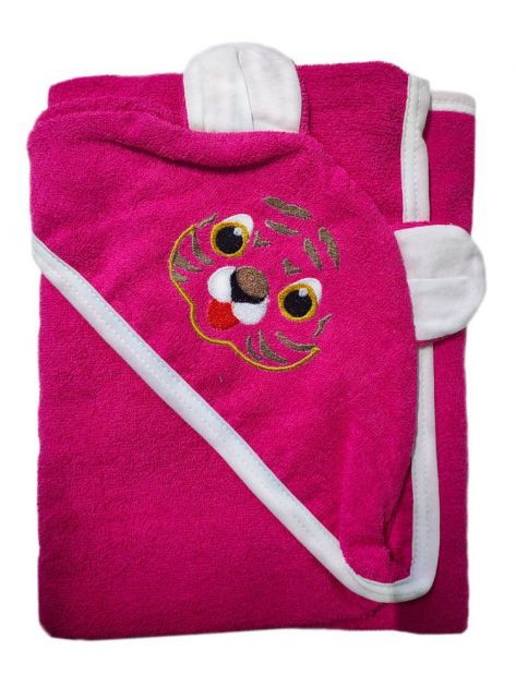 Махровое полотенце детское "Уголок" 95*95 с ушками (Тигренок, малиновый)