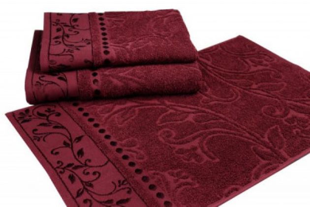 Комплект махровых полотенец, 3 штуки (30*60, 50*90, 70*130 см), жаккард (Бордовый)