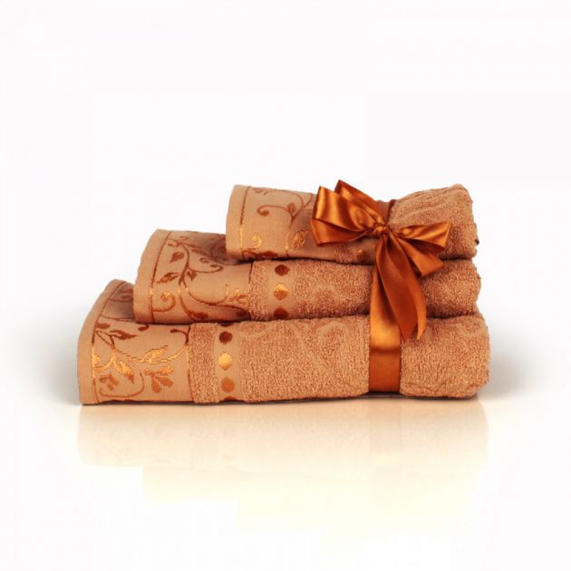 Комплект махровых полотенец, 3 штуки (30*60, 50*90, 70*130 см), жаккард (Коричневый)