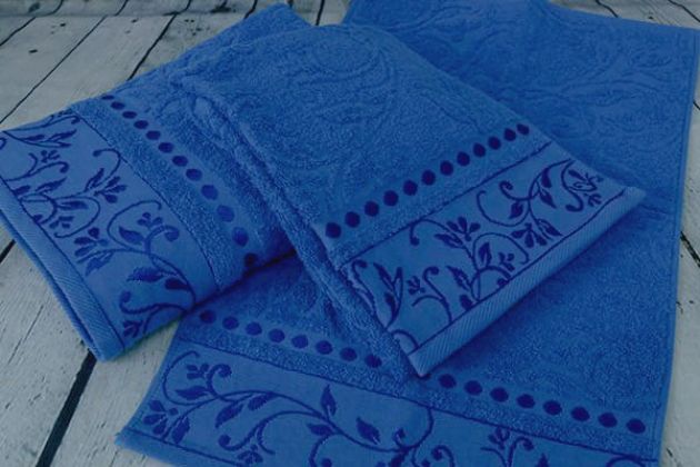 Комплект махровых полотенец, 3 штуки (30*60, 50*90, 70*130 см), жаккард (Сапфировый)