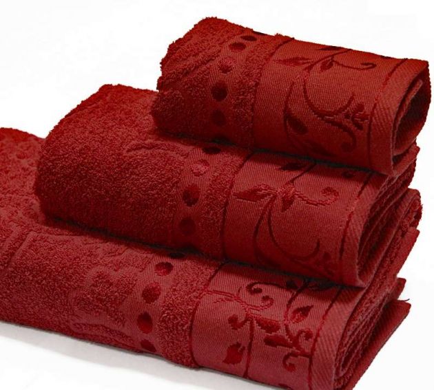 Комплект махровых полотенец, 3 штуки (30*60, 50*90, 70*130 см), жаккард (Винно-красный)